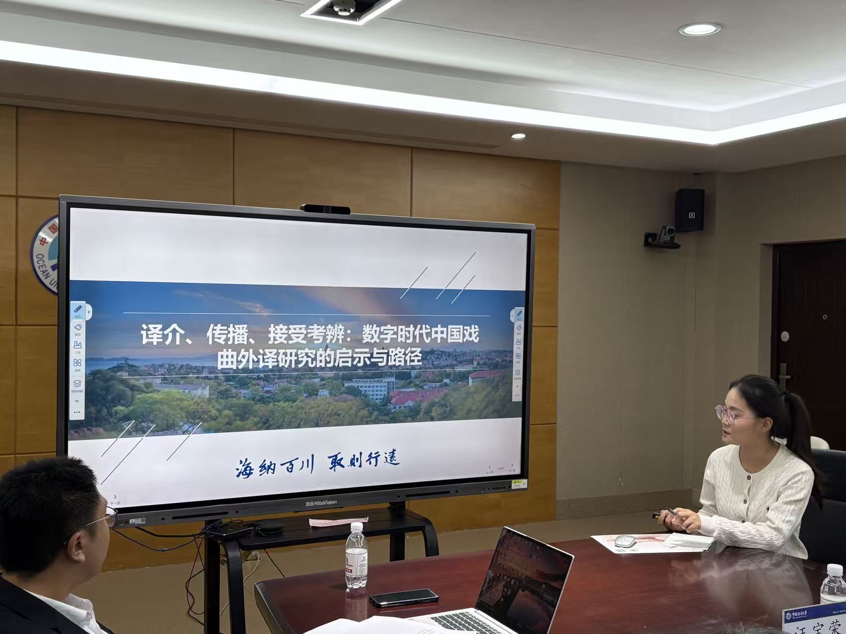 【本站讯】2025年10月17日下午,中国海洋大学研究生百川讲坛第533讲暨翻译地理学创新研究团队第33次学术沙龙在外国语学院N217会议室成功举行。杭州师范大学外国语学院教授、博士生导师、翻译研究所所长汪宝荣应邀作了题为“译介与传播行动者网络模式:理论、方法与应用”的学术讲座,讲座由外国语学院贺爱军教授主持。讲座后,三位团队成员作学术汇报。外国语学院师生50余人参加了本次学术活动。