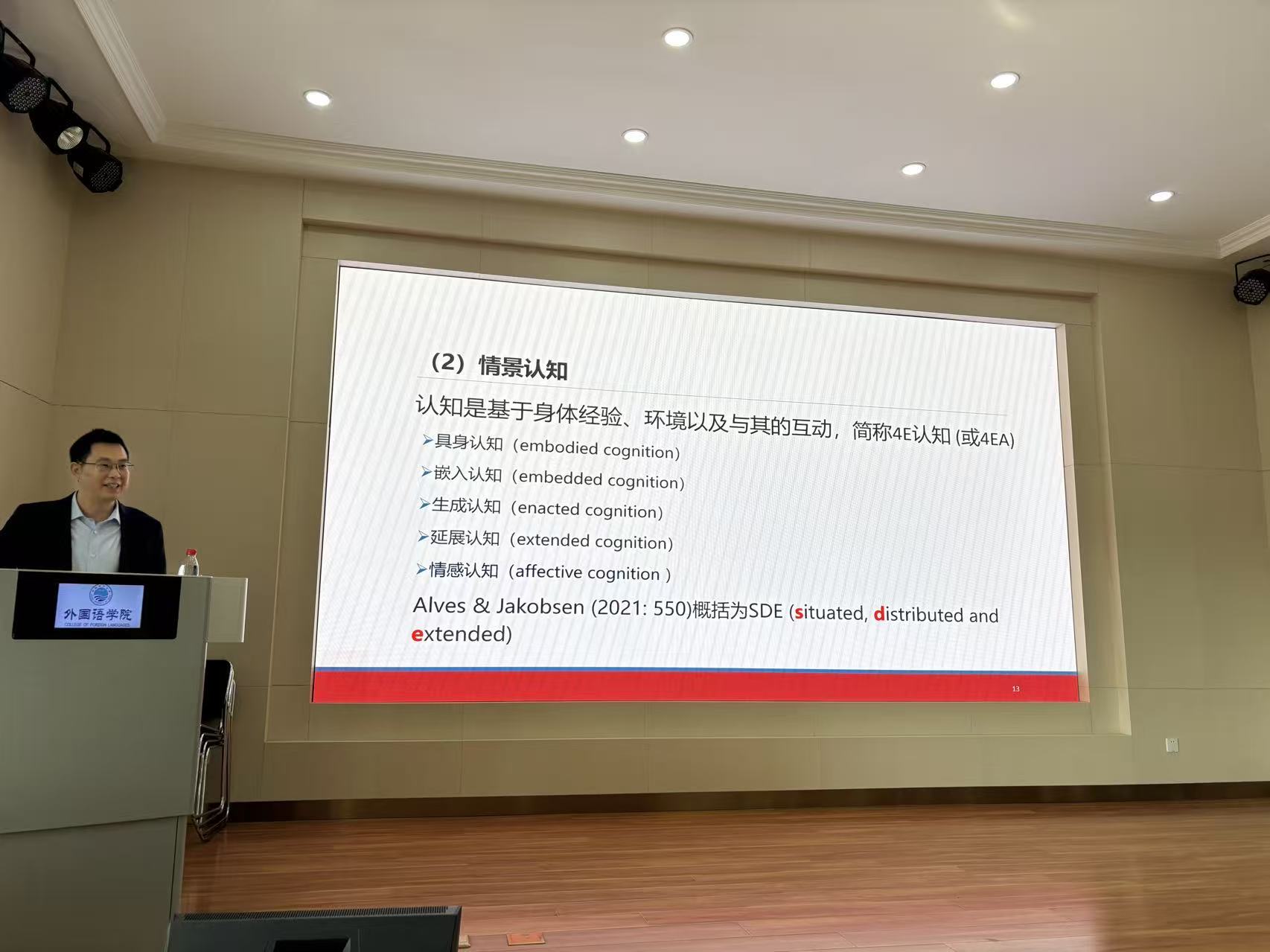 讲座伊始,肖开容以认知翻译学的发展脉络为切入点,清晰呈现了当前认知翻译研究方法多元、范式并存、跨学科深化的发展趋势。他指出当前认知翻译学主要聚焦翻译的通用认知过程和结果研究,对认知的文化独特性、文化差异性、文化翻译认知策略和接受效果关注不够。继而,他利用大量的例证,详细阐释了从认知到文化认知的理论演进,解读了计算认知与情景认知两大范式的核心内涵。最后,他以认知人类学理论为支撑,结合东西方文化认知差异实例,构建了文化认知翻译研究框架,明确四大研究目标及基于概念化工具的分析路径,为文化认知翻译研究提供了全新视角。