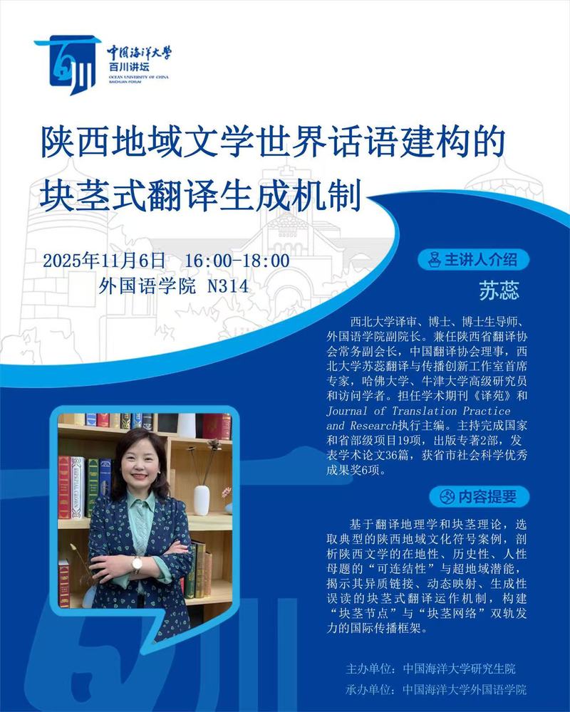 讲座预告|苏蕊教授:陕西地域文学世界话语建构的块茎式翻译生成机制