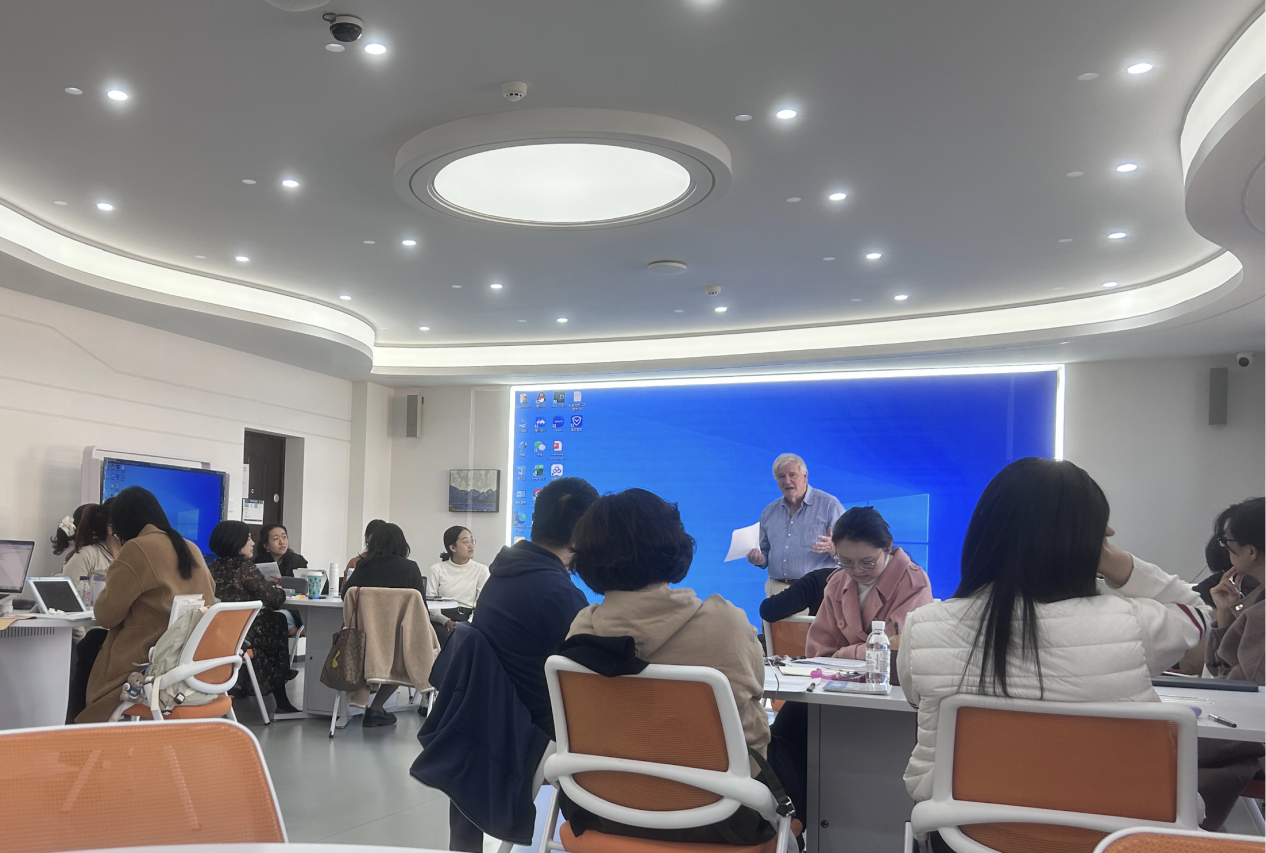 【本站讯】11月14日下午,学校特聘教授、国际会话分析领域权威学者、英国约克大学语言与语言科学系Paul Drew教授为外国语学院师生作了题为“行为、话轮设计和序列——以‘提供帮助’行为为例”的学术讲座。中国海洋大学会话分析研究团队于国栋教授主持讲座并向PaulDrew教授表示欢迎和感谢。
