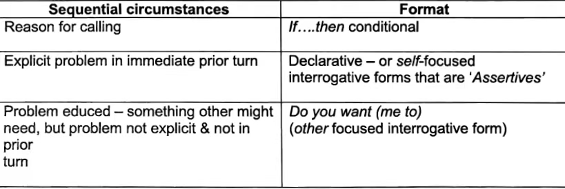 Paul Drew强调了社会行为在会话分析研究中的核心地位,言谈互动中的语言并非被用来进行单纯进行信息交换,而是在执行行为(language delivers action)。随后,基于交际者执行该行为时的多种可选方式(话轮设计),他引出序列环境(interactional or sequential environment)在交际者选择特定方式来执行该行为时的关键作用,即交际者在执行“提供帮助”这一行为时,其对执行方式(或话轮设计)的选择并非是随机的,而是会受到行为执行时所处序列环境的影响。