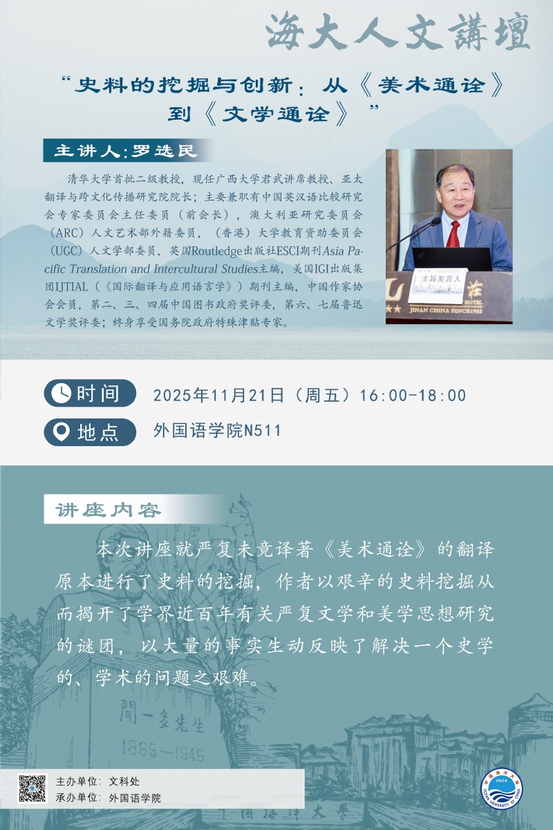 讲座预告| 罗选民教授:“史料的挖掘与创新:从《美术通诠》到《文学通诠释》”