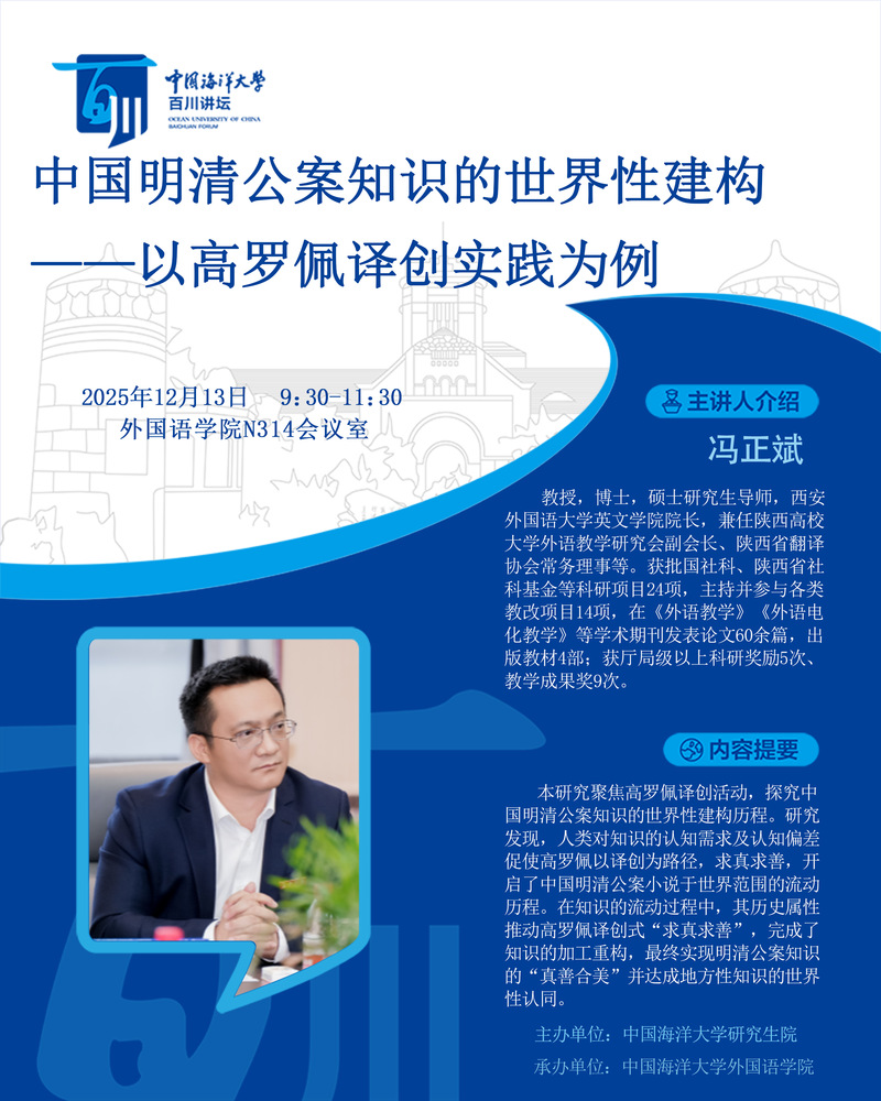 讲座预告| 冯正斌教授:中国明清公案知识的世界性建构——以高罗佩译创实践为例