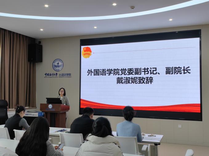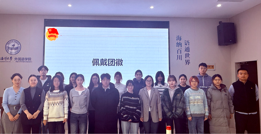 【本站讯】2025年12月25日下午,中国海洋大学外国语学院在学院N107教室隆重举行新团员入团仪式。16名先进青年在庄严的团旗下光荣加入中国共产主义青年团。学院党委副书记、副院长戴淑妮,团委书记高扬,学院党委专职组织员、团委副书记曹翔,辅导员张若萱出席仪式。仪式由学院团委兼职副书记桂阳主持。