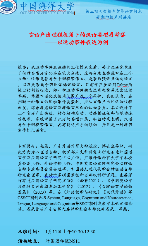 赵晨教授讲座预告