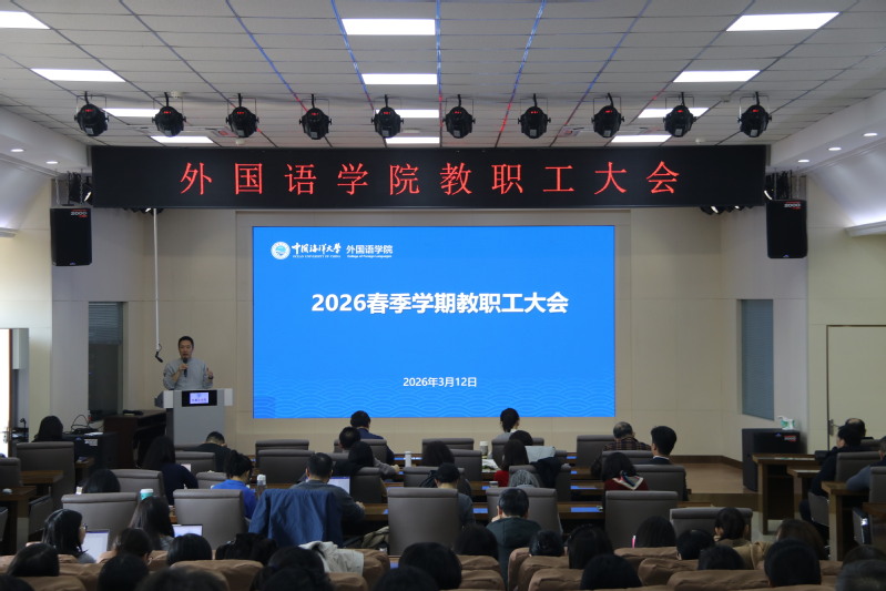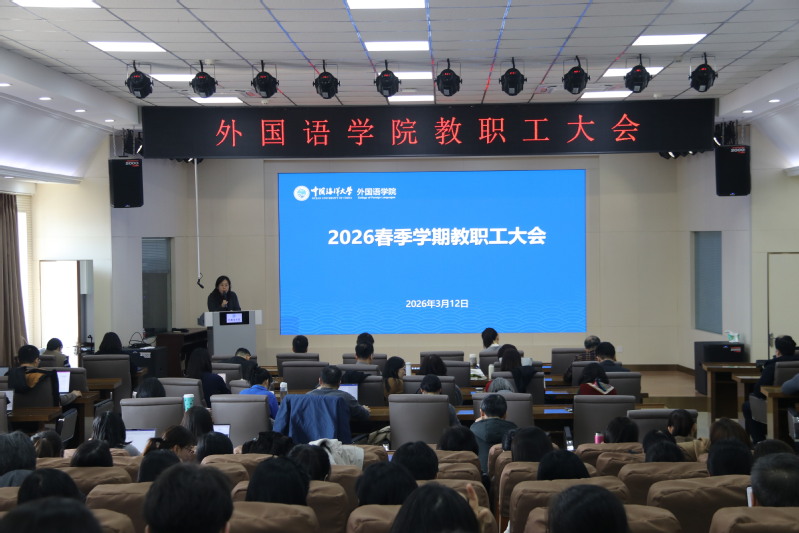 【本站讯】2026年3月12日,外国语学院召开全体教职工大会,对新学期工作进行全面动员与部署。学院党政班子成员及全体教职工参会,会议由党委书记许玲玲主持。