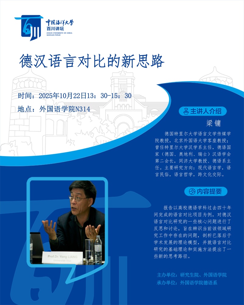 讲座预告| 梁镛教授:德汉语言对比的新思路
