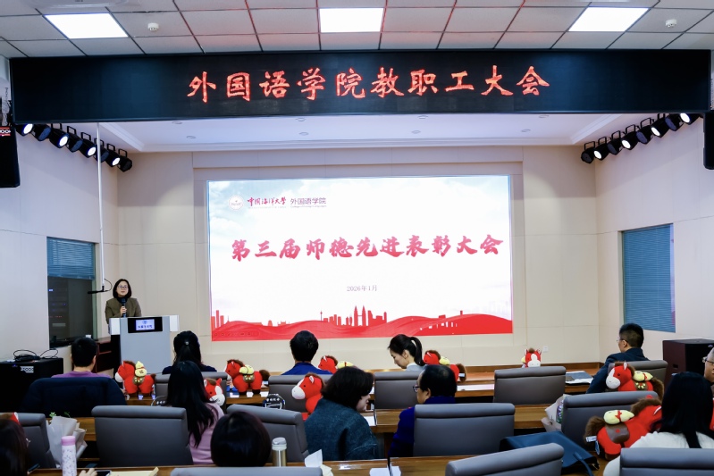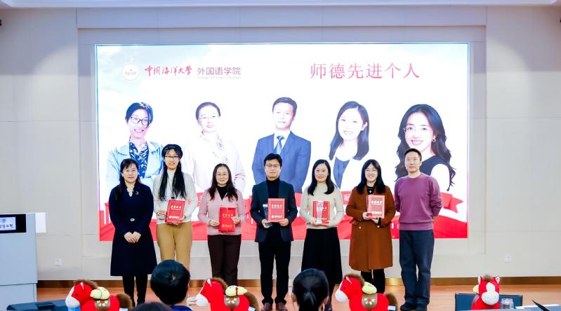 【本站讯】为深入贯彻落实习近平总书记给学校全体师生重要回信精神,充分展现学院教师躬耕教坛的育人典范,积极营造尊师重教的浓厚氛围。1月8日下午,外国语学院举行第三届师德先进表彰大会。学院党委书记许玲玲、院长于国栋、学院党政领导班子成员、全体教职工及学生代表参加大会。会议由学院党委副书记、副院长戴淑妮主持。