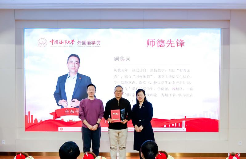 随后,许玲玲、于国栋共同为荣获“师德先锋”和“师德先进个人”称号的教师颁发荣誉证书。下一步,外国语学院将持续深化师德师风建设长效机制,以典型引路、以榜样赋能,营造见贤思齐、崇教尚德的浓厚氛围,推动形成师德高尚、业务精湛、充满活力的教师队伍,为培养更多担当民族复兴大任的时代新人筑牢根基。