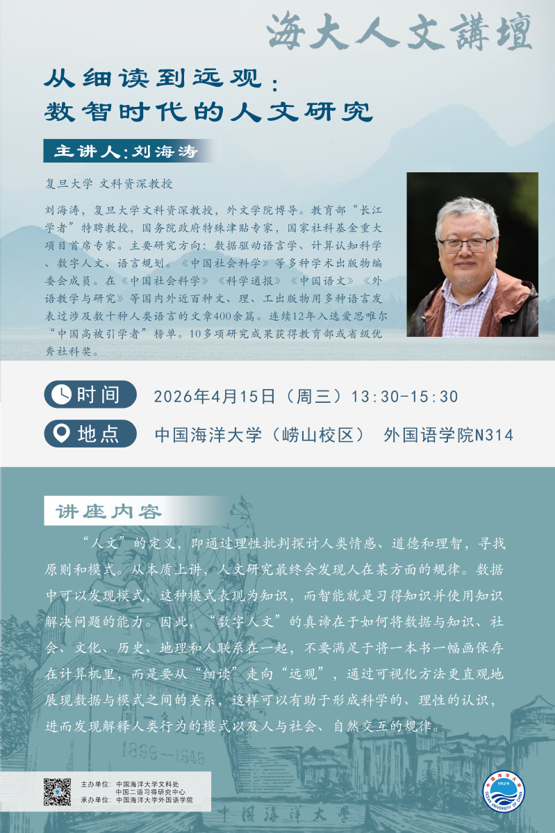 讲座预告| 刘海涛教授:从细读到远观:数智时代的人文研究