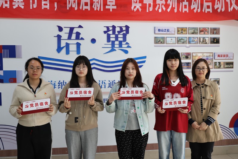 【本站讯】为深入推进“一站式”学生社区建设,充分发挥学生党员在社区的示范带动作用,营造爱读书、读好书、善读书的浓厚氛围,4月16日下午,外国语学院在北海苑2号楼一楼大厅举行“语翼书香,阅启新章”读书系列活动启动仪式暨党员宿舍授牌仪式。学院党委书记许玲玲,党委副书记、副院长戴淑妮,大学外语教学部教工党支部书记张凯教授,辅导员刘珈彤,学生党支部代表参加活动。仪式由学院团委副书记曹翔主持。