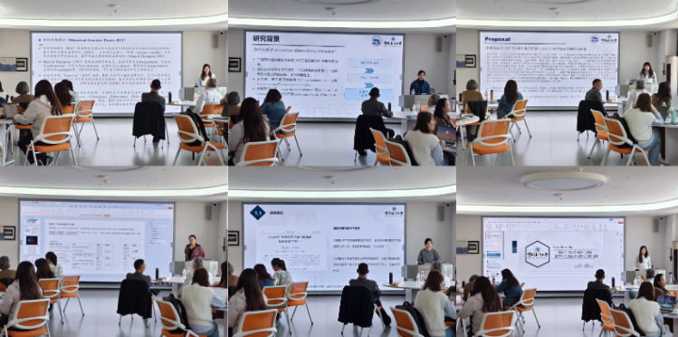 孟丽同学以《中国学习者与英语母语者议论文不同功能阶段的修辞关系组织特征对比研究》为题展开汇报。研究从英语二语议论文写作的篇章组织难题出发,结合Hyland议论文三阶段框架与修辞结构理论(RST),从修辞关系类型分布、组织复杂度及修辞关系序列三个维度,系统对比学习者在议论文不同功能阶段中的修辞关系组织特征。