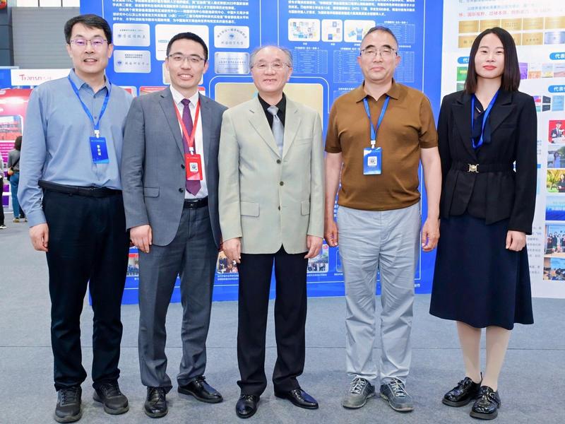 展会期间,中国外文局原副局长、中国翻译协会常务副会长王刚毅,中国外文局综合业务部副主任、中国翻译协会医学语言服务专业委员会副主任委员李伟勇莅临学院展位,与学院教师亲切交流并合影留念。